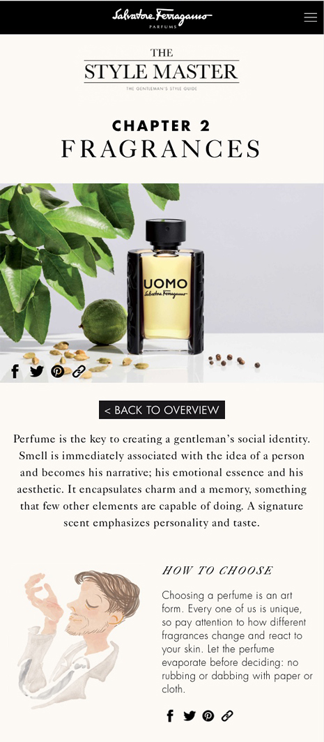 Illustrations for the UOMO fragrance online campaign by Salvatore Ferragamo.